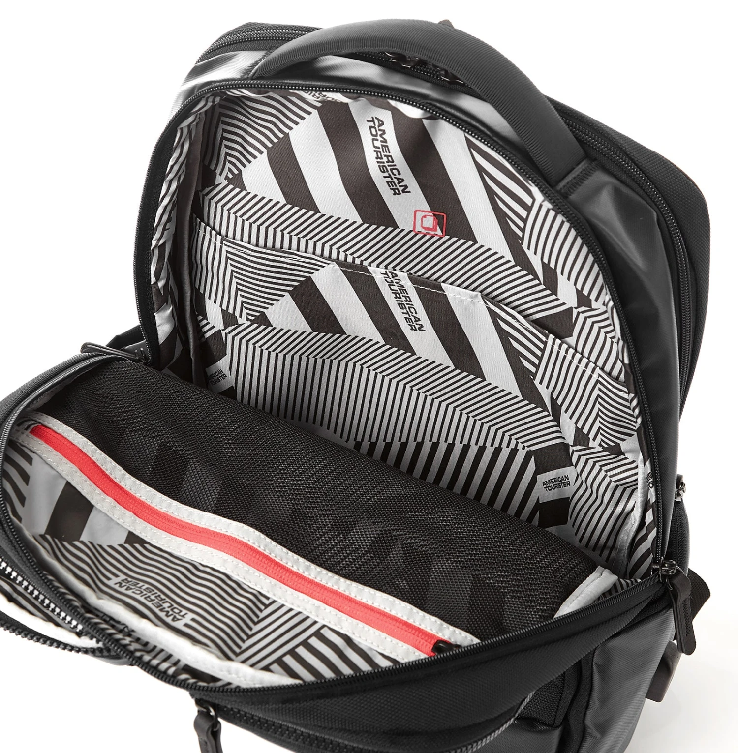 Casual, functional and versatile. The Zork backpack is packed with features including a security anti-theft 15.6” laptop compartment, USB charging port, side wet pocket, security back pocket and Tractum™ suspension straps. The antimicrobial treated rPET lining offers extra hygiene protection during daily commute.