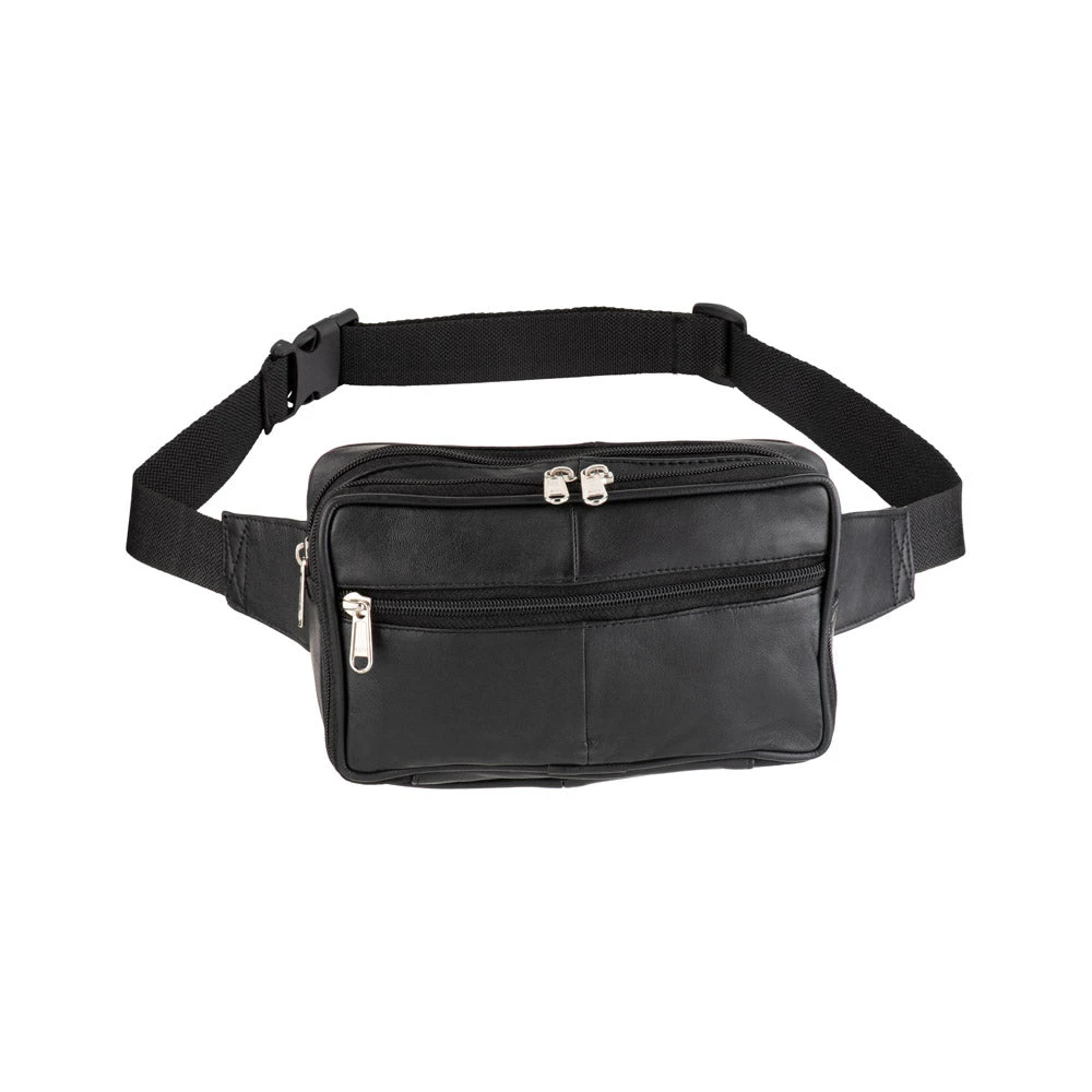 Soft Leather Belt Bag This soft Nappa leather belt bag has been designed by b. The front pocket is RFID protected, so you can carry your cards securely. It has a front zip, and a front full zip around compartment with an organiser The organiser has space for three credit cards, a pen holder, mesh protected compartment and two zippered pockets There is a second larger top zip compartment and zip pockets on the rear This belt bag has plenty of pockets and storage for your travels!
