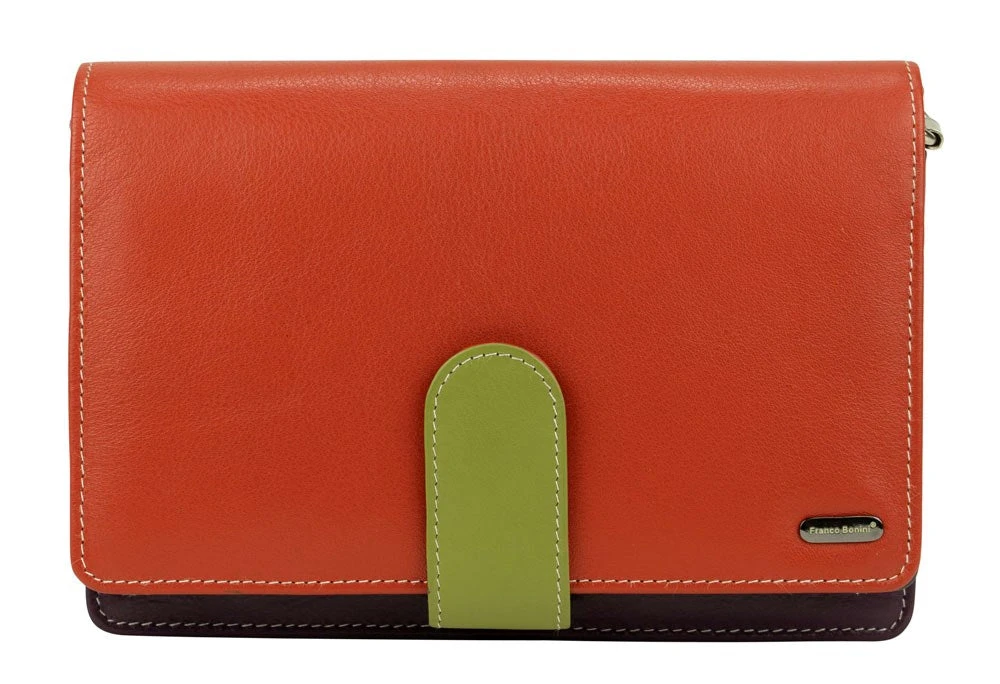 Flap Over Soft Leather Travel Wallet Designed by Franco Bonini, this soft Nappa leather travel bag/wallet, is perfect for keeping all your cards and documents safe when travelling It holds 32 cards with RFID protection for extra security. There are also two ID windows for your convenience The travel wallet has two compartments, an internal zip pocket, and a rear zip coin pocket It has an adjustable shoulder strap for easy wearing.