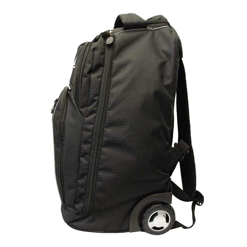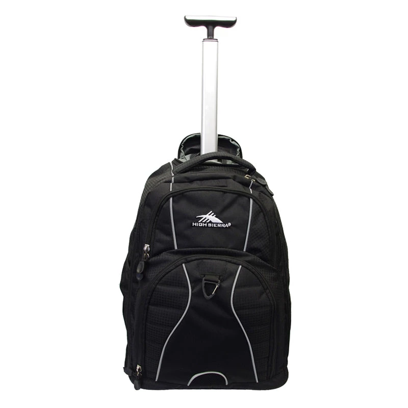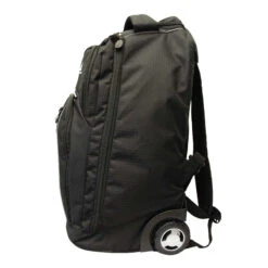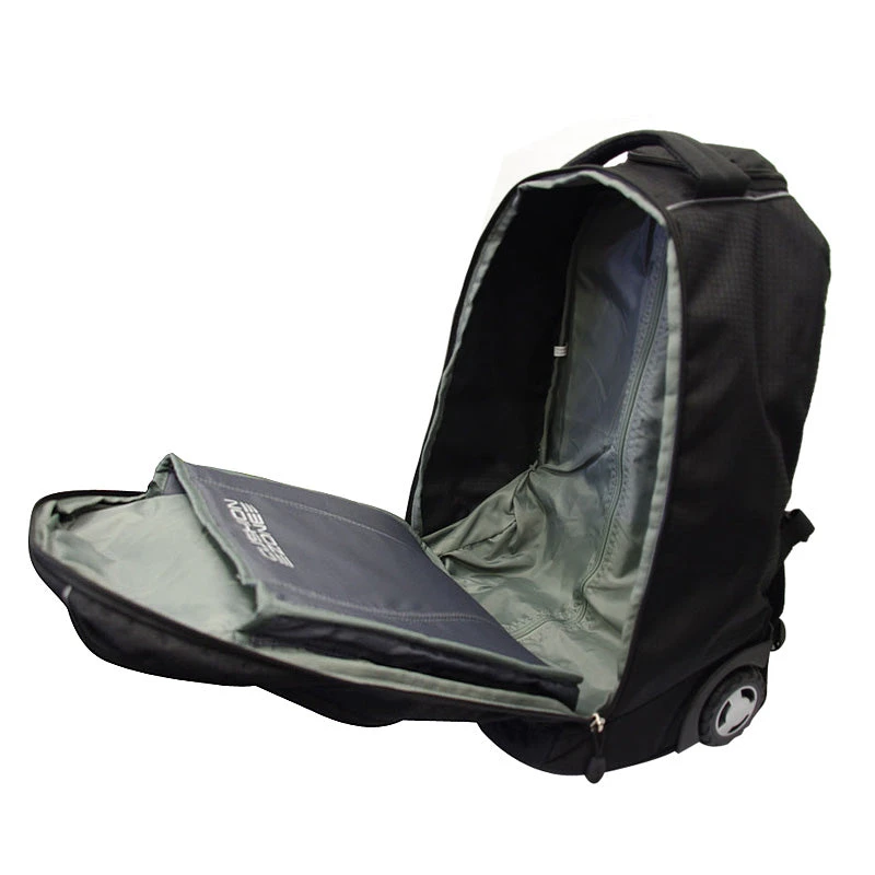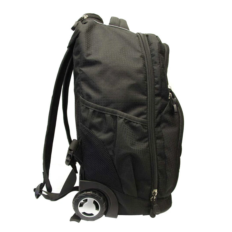 - Smooth rolling, corner-mounted wheels. Single-tube telescoping handle stows inside a protective zippered compartment