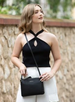 One of our most loved crossbody bag styles is given a bold modern edge with the addition of a Graphic patterned webbing strap. Arriving with 2 strap options, you can quickly convert from an elevated look with the webbing strap, or streamline your outfit by switching to the matching crossbody strap. Its double zip opening and 2 compartments allow for easy organisation. With additional rear and internal zips, there will be the ideal location for all your essentials. Made from premium vegan leather, certified by Vegan Australia this crossbody is not only cruelty free, but durable and made to last.