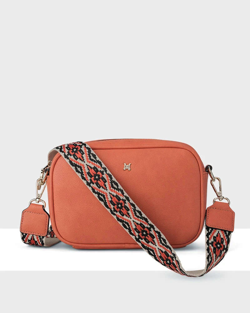 This Madison camera crossbody bag is our most loved style. Monica + Aztec Bag Strap comes with a patterned webbing strap, as well as a matching crossbody strap – perfect for changing up your look. Its soft shape and spacious interior will fit your everyday essentials, ideal for when you want to be hands free. A slip pocket on the back is perfect for quick access to your phone.