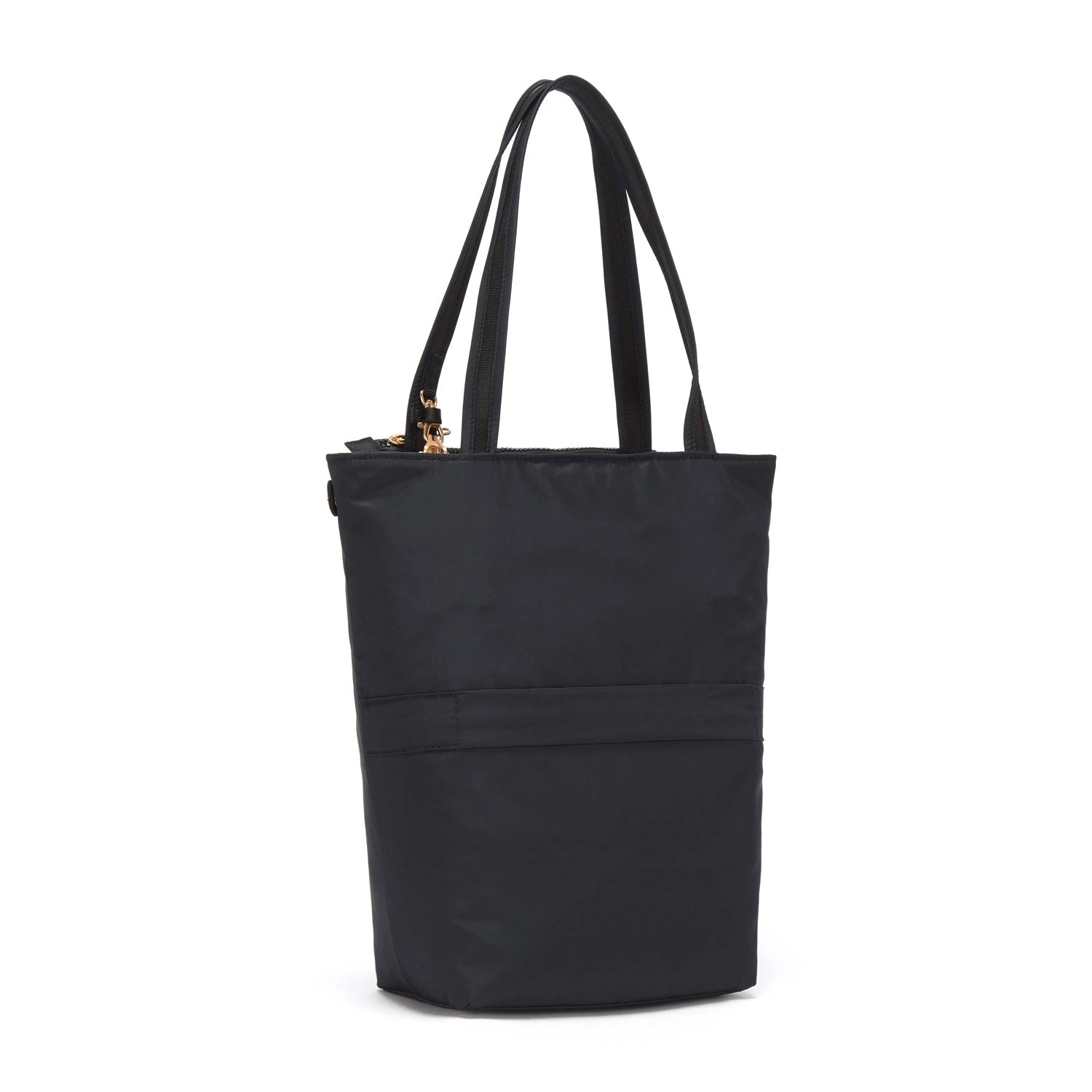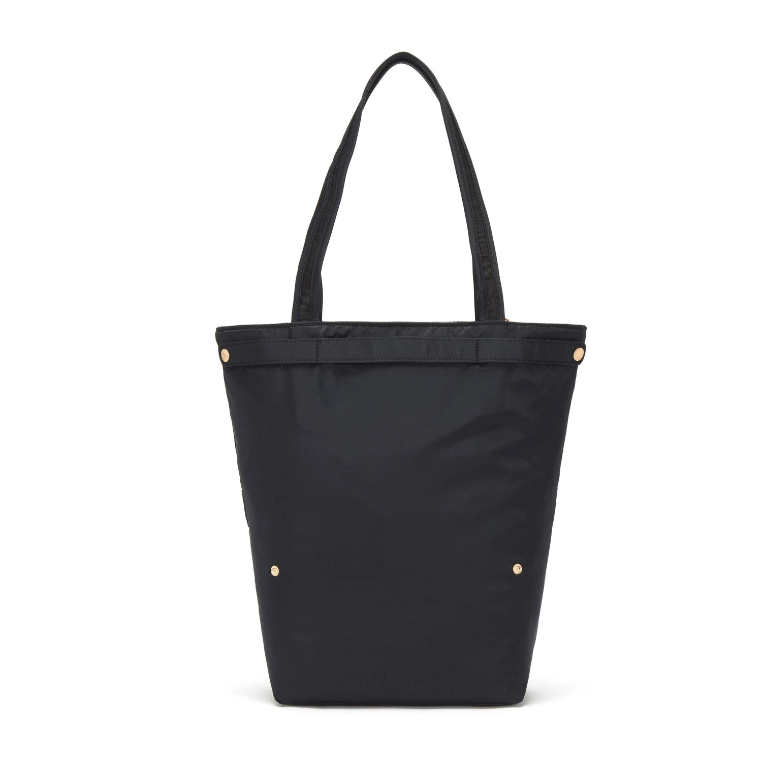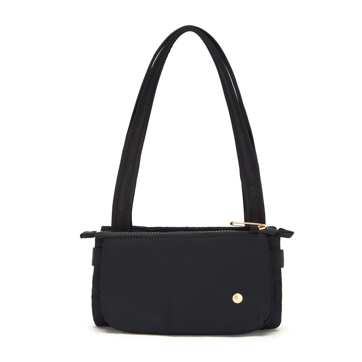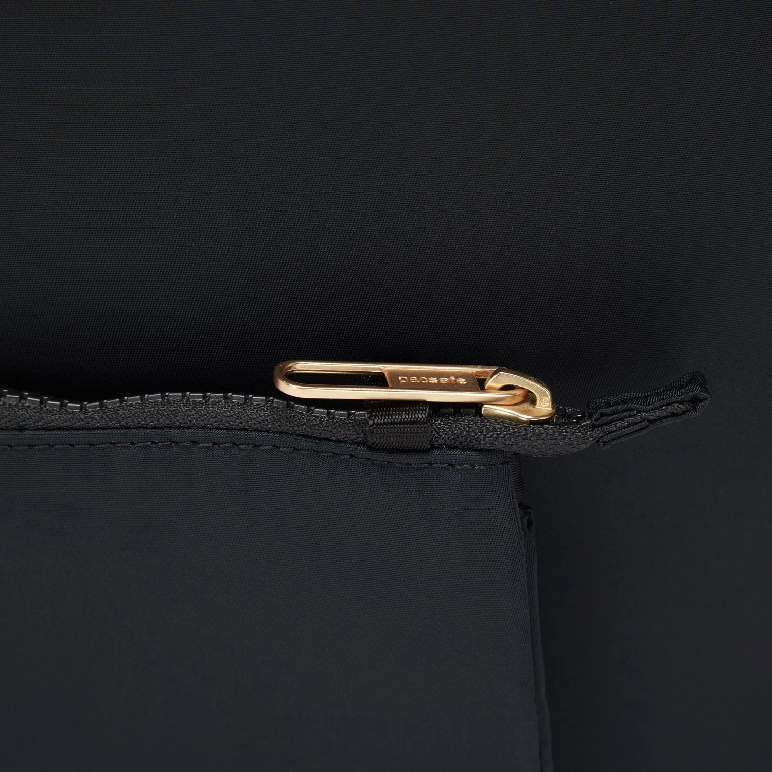 Be prepared for the unexpected with this versatile anti-theft bag that converts from a compact purse to a full-sized tote with several variations of ways to carry. Wear with pouch snapped to the front of the tote, or remove and stash it inside. Fold up the tote completely for a handled purse or separate the cut-resistant and RFID blocking pouch to double as a clutch. With secure zippers and closures, this all-in-one protects your belongings and identity. Includes standard sized luggage strap for easy travel.