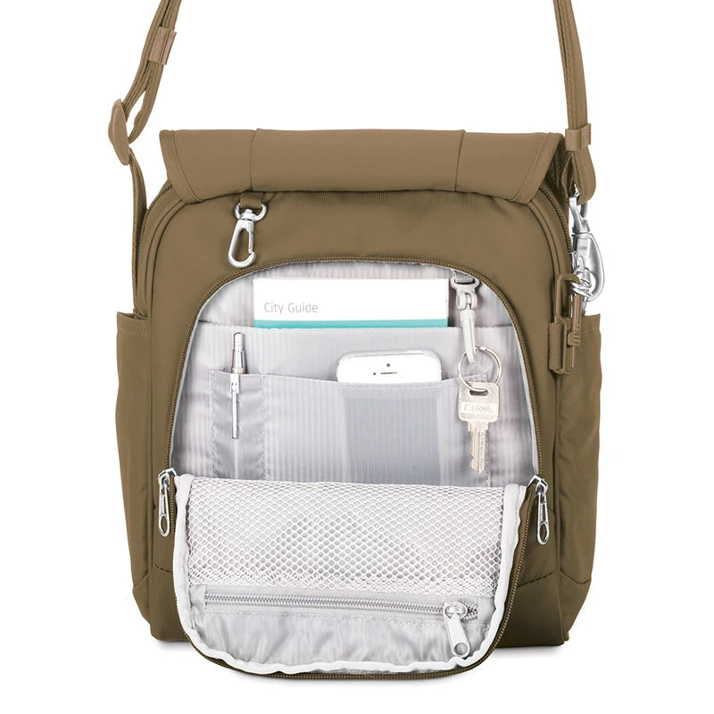 Based on one of our most popular silhouettes, this undisputed classic has retained its shape but boasts all 6 anti-theft features including the new Lockabout⢠security clip and a zippered RFIDsafe⢠blocking pocket that fits a standard menĆs wallet. It even conveniently includes a built-in, padded sleeve to fit an iPadĀ® or tablet.