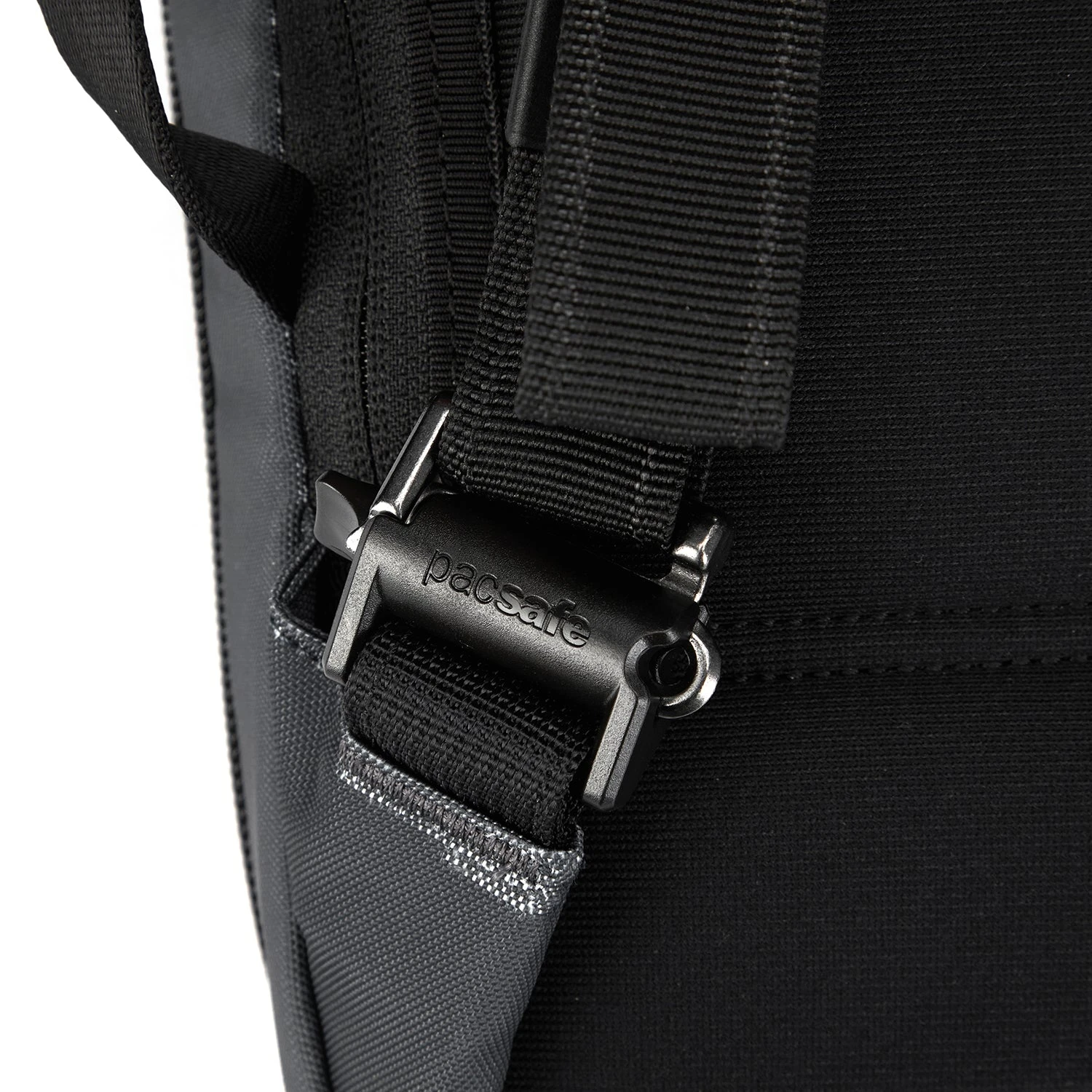 Our popular commuter backpack design in a more compact size. This ultra slim profile allows for easy movements through busy areas such as subway, city, and airports. This bag is the perfect companion for city dwellers and considered commuters. The 11L capacity of this anti-theft backpack holds more than you think. Fits a 13″ laptop and tablet in separate soft padded compartments and is packed with pockets for organization for all your gadgets, cables, and on-the-go gear. Not only is the bag packed with function, it’s packed full of PacSafe security features. Made with 23 recycled plastic bottles.
