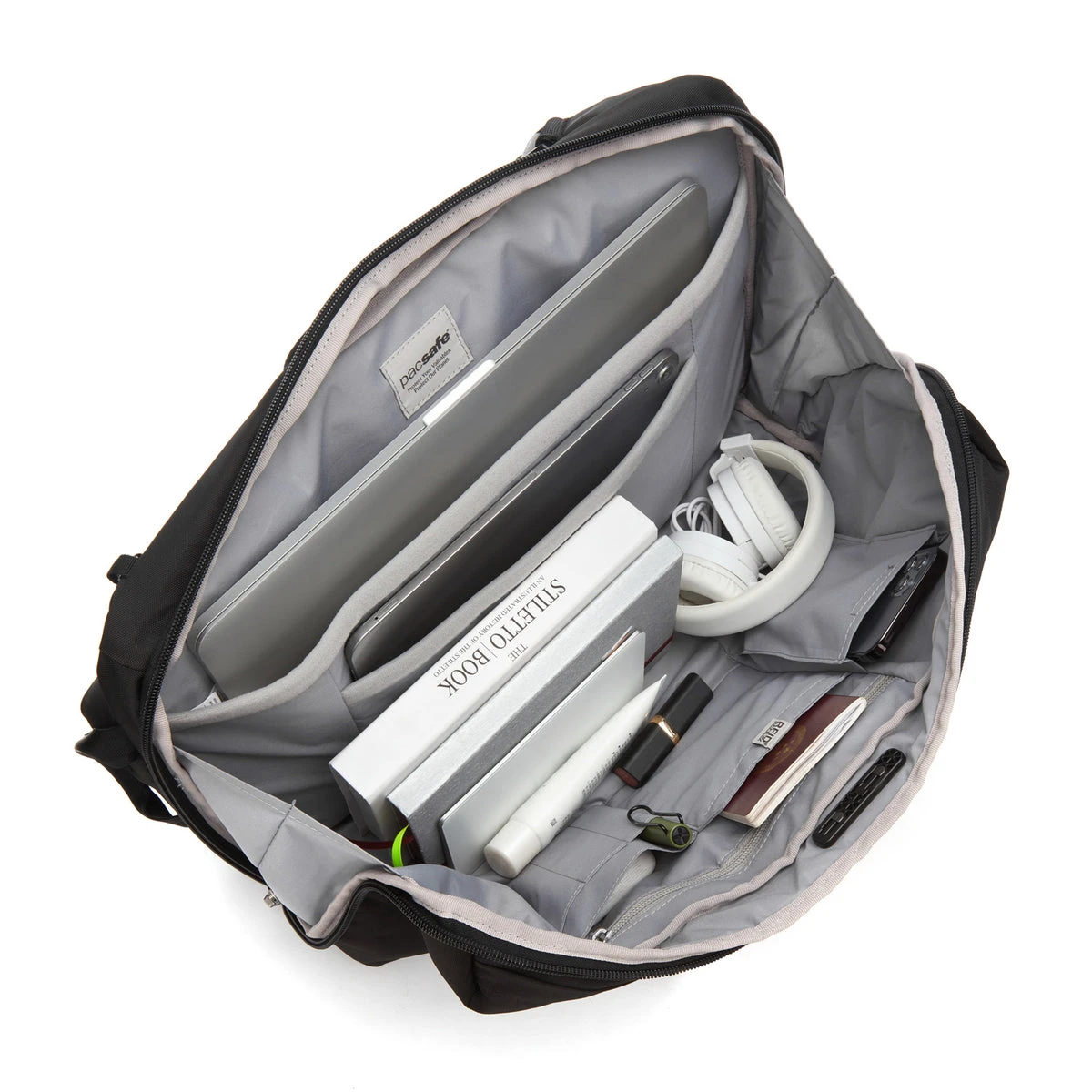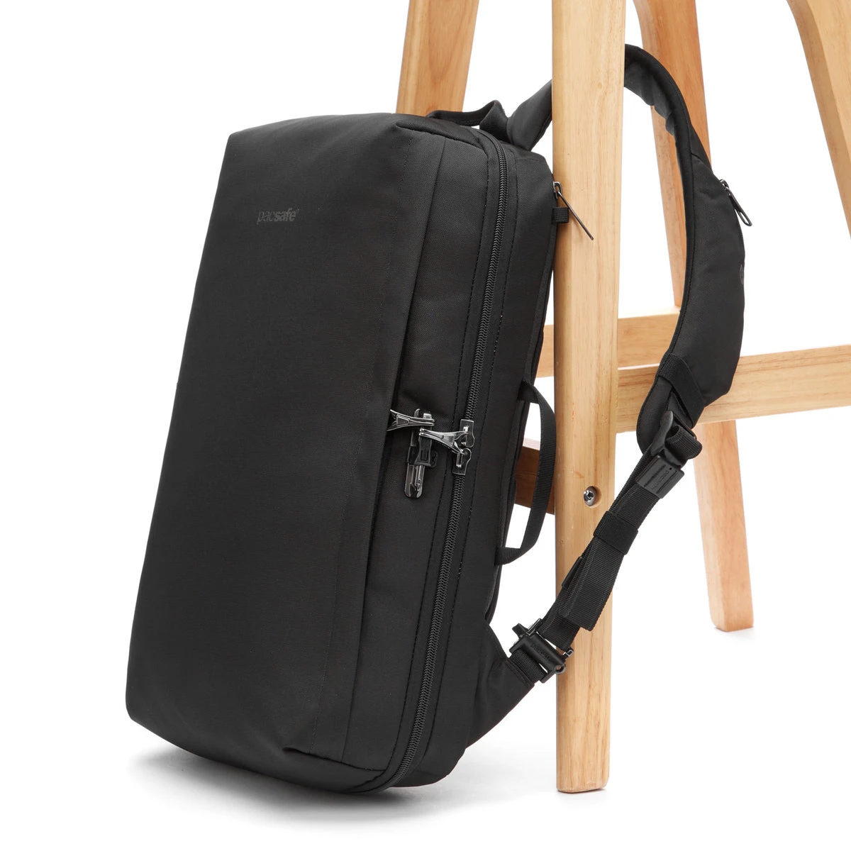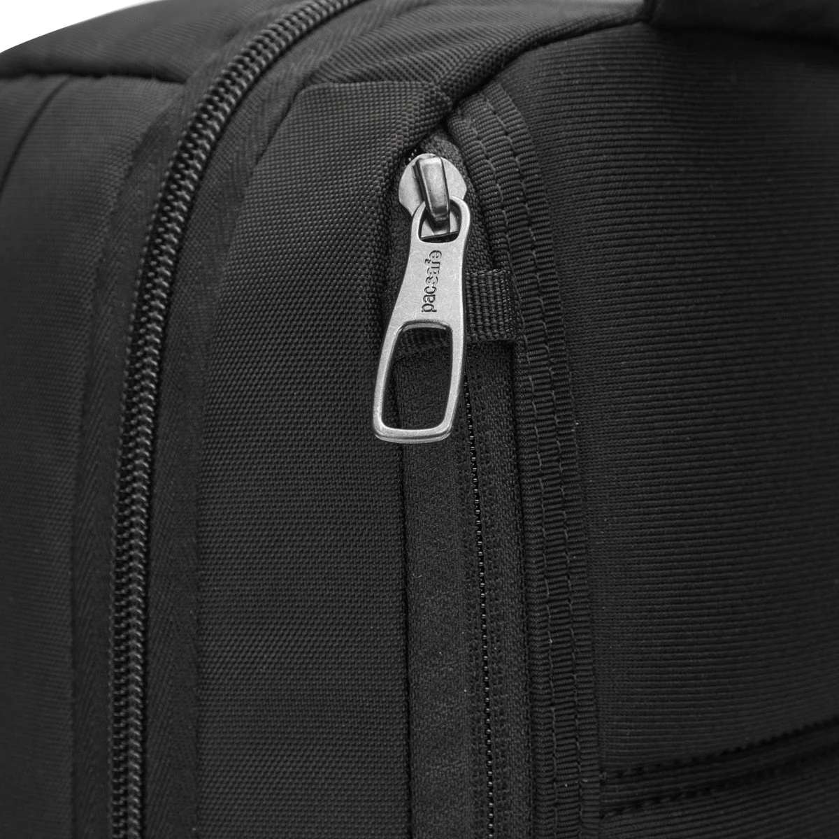 The slim profile allows for easy movements through busy areas such as subways, city streets, and the airport, making it the perfect companion for city dwellers and commuters. The 18L capacity of this anti-theft backpack holds more than you think, with separate padded compartments for a 16″ laptop and 11″ tablet, and several internal pockets for your gadgets, cables, and on-the-go gear. The unique sideways wide opening also makes it very easy for you to access your belongings with minimal hassle. Not only is the bag packed with function, it’s packed full of Pacsafe security features.