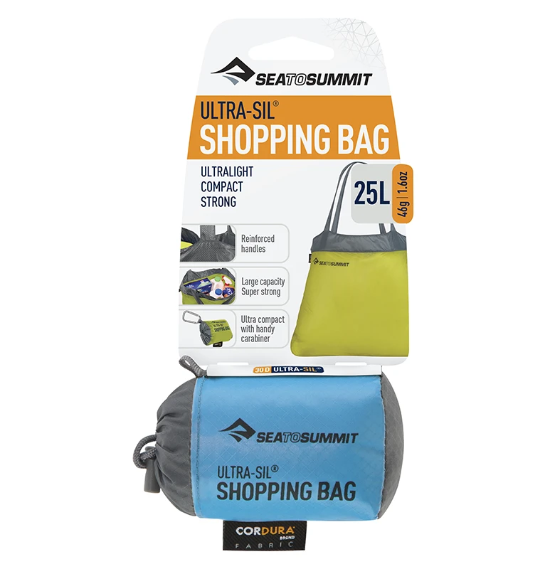 Not only very practical and environmentally friendly, our Ultra-Sil™ Shopping Bag is super compact and lightweight. The tiny packed size fits easily on your key ring, in a jacket pocket or a purse. It’s also amazingly strong and durable, so you can fill it to Volume and not fear the bottom will drop out.