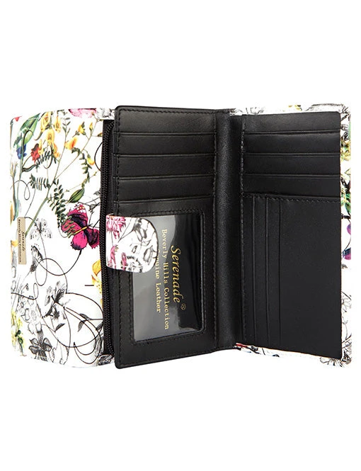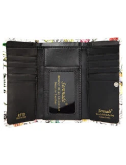 This Serenade Beverly Hills Collection Botanics medium leather wallet has plenty of room for all your cards and essentials. Large enough to fit 20 cards plus 2 window identification slots.