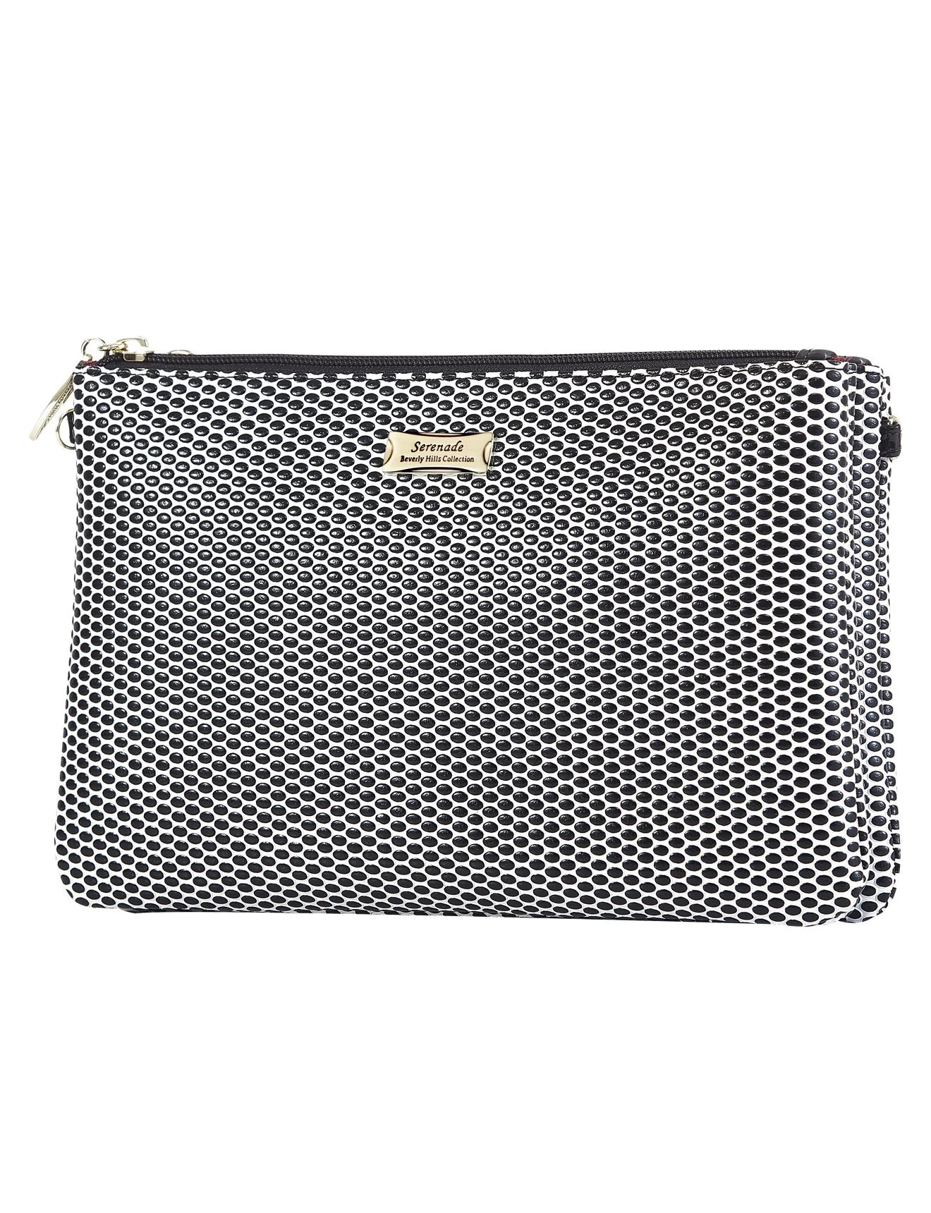 This versatile Serenade Beverly Hills Collection Cosmopolitan Vegan Leather cross body bag is a great everyday bag guaranteed to keep you organised, with two main zippered pockets and an external zip pocket in addition to an internal zip pocket and card holder section. This compact yet roomy bag is a perfect travel bag and doubles up as a great evening bag.