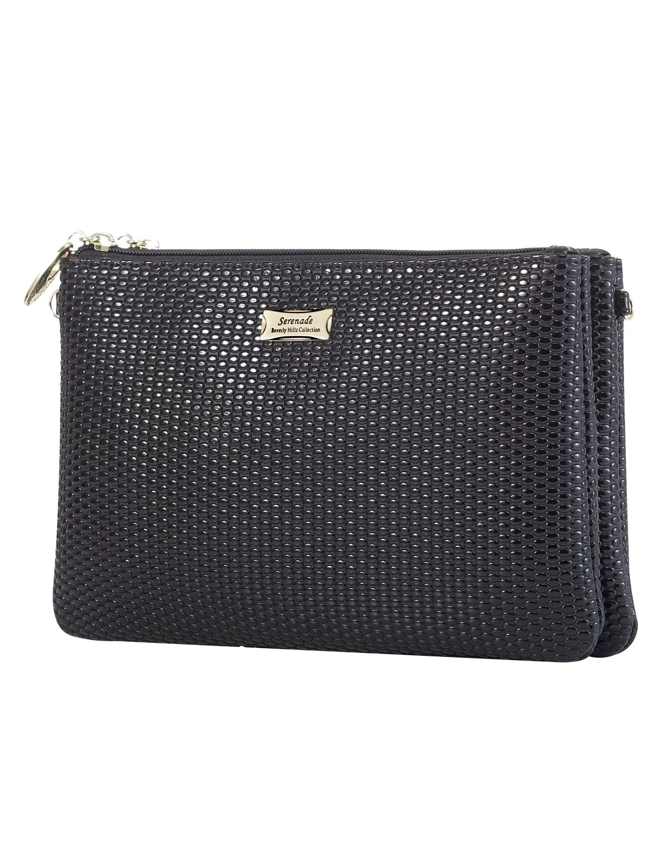 This versatile Serenade Beverly Hills Collection Cosmopolitan Vegan Leather cross body bag is a great everyday bag guaranteed to keep you organised, with two main zippered pockets and an external zip pocket in addition to an internal zip pocket and card holder section. This compact yet roomy bag is a perfect travel bag and doubles up as a great evening bag.