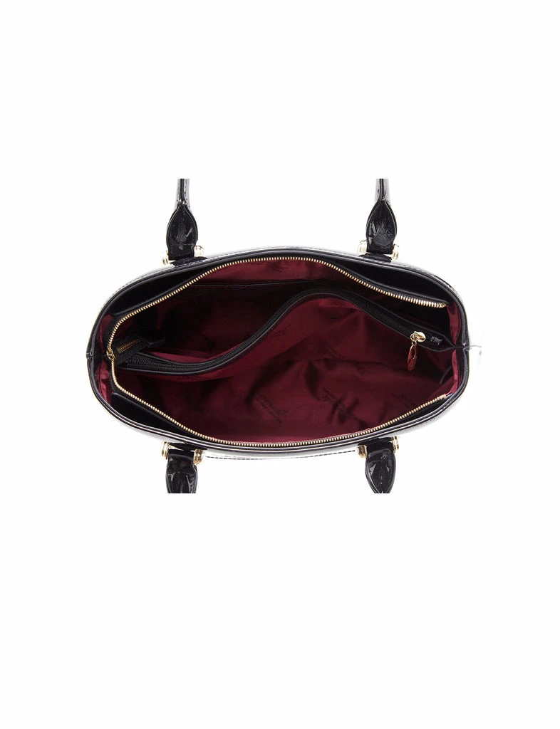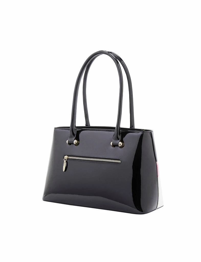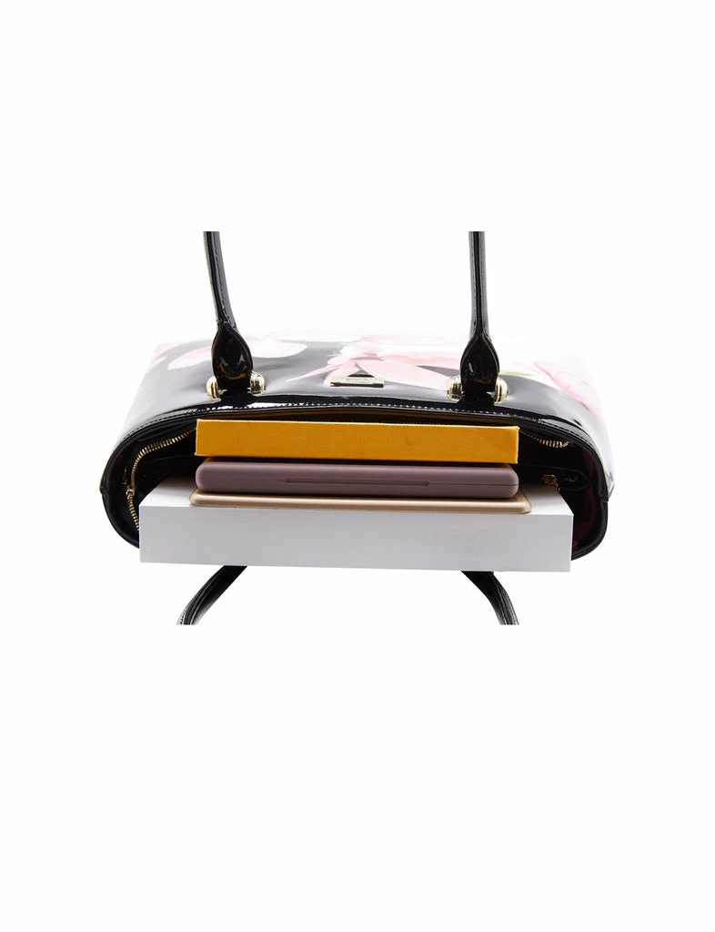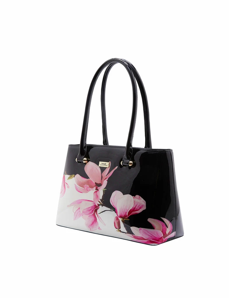 This Serenade Beverly Hills Collection Magnolia print handbag makes a statement. Crafted from premium leather with a patent finish. This bag has two interior zippered compartments, two interior slip pockets and an external zip compartment ideal for organising all your belongings. This bag has long handles that fit comfortably on your shoulders.