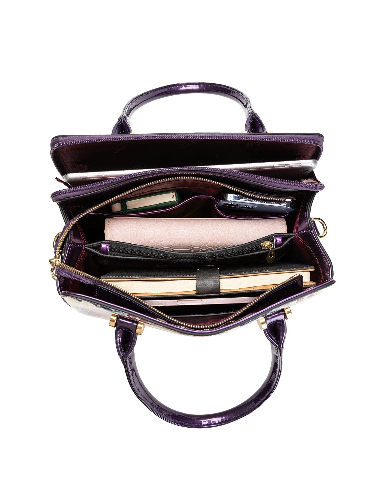 This Serenade Beverly Hills Collection Angelique print patent Leather handbag is perfect for everyday. Crafted from premium leather, featuring two main zip compartments one with an interior zip and two interior slip pockets. Ideal for organising all your belongings.