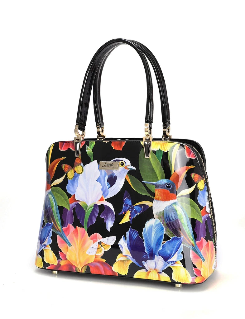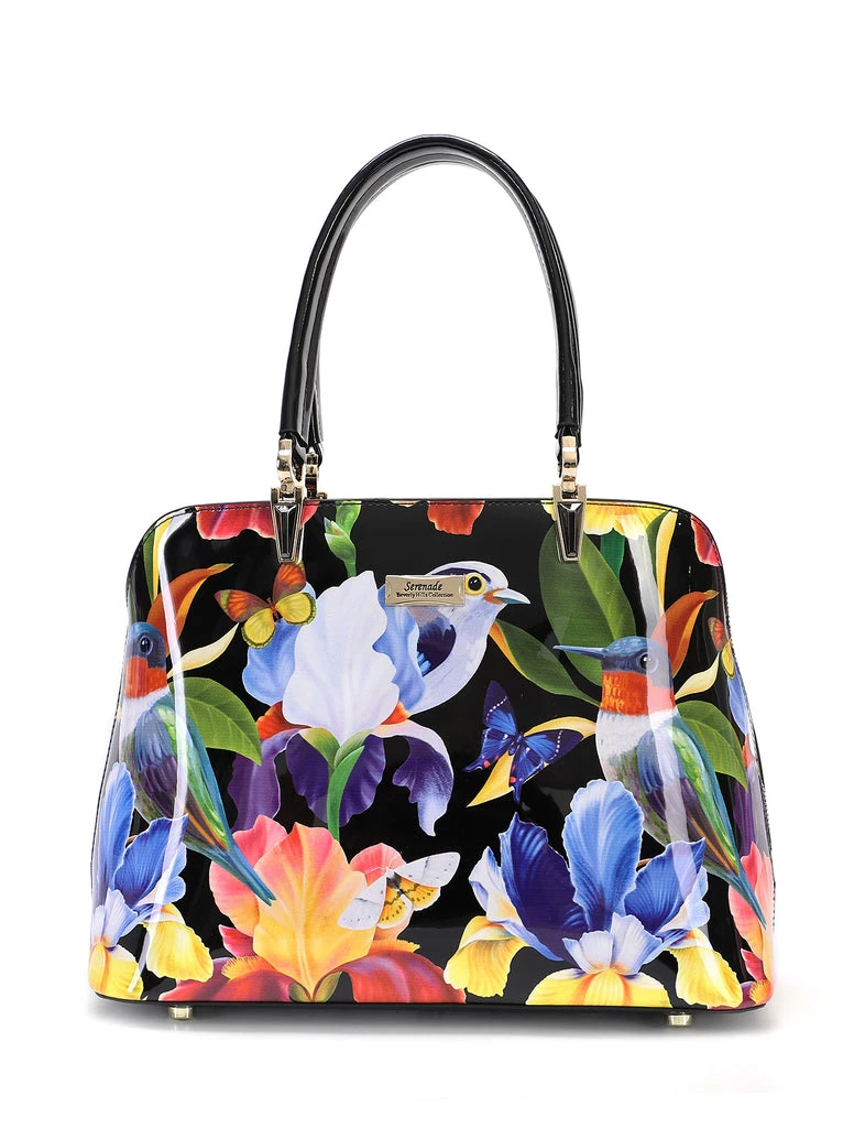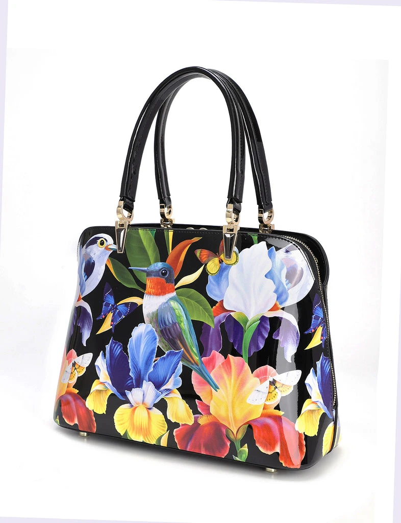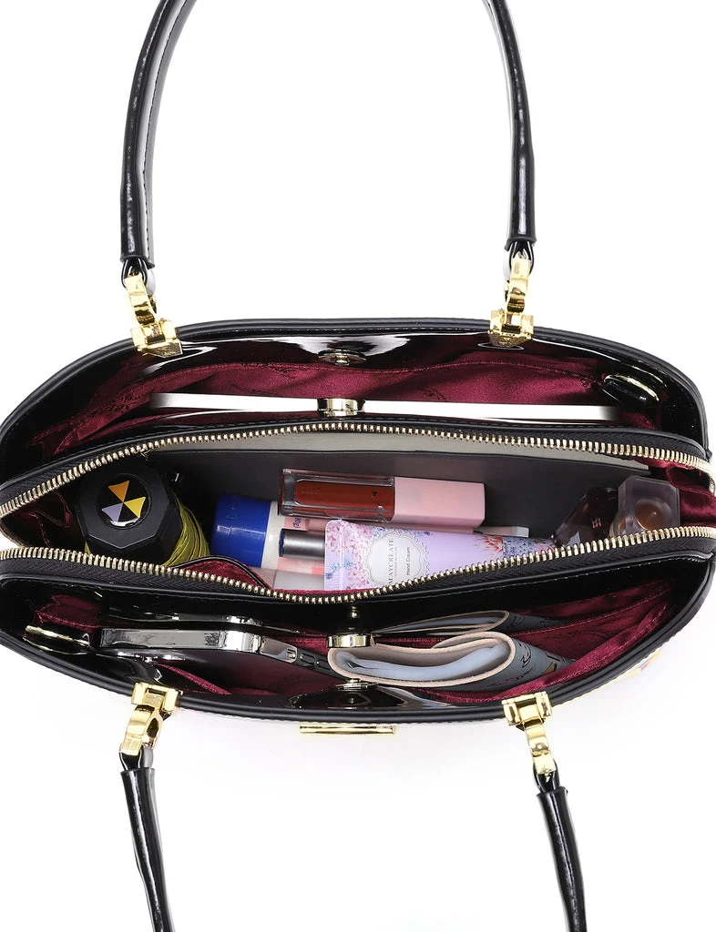 This Stunning Robyn leather handbag is sure to attract attention. Crafted from premium patent leather and featuring one main zippered compartment plus two magnetic closure compartments. The central zippered compartment has one interior zippered compartment and two pouches ideal for your phone and other small items. A great bag that can see you through from daytime to an evening out.