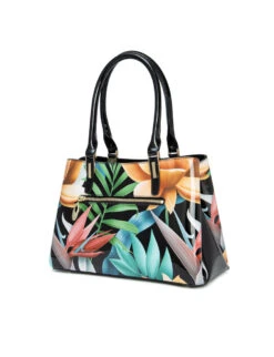 This Serenade Beverly Hills Collection, Betsy Grip top handbag is perfect for everyday. Crafted from premium patent leather with a stunning floral print which is complimented with Black patent leather handles and trim.