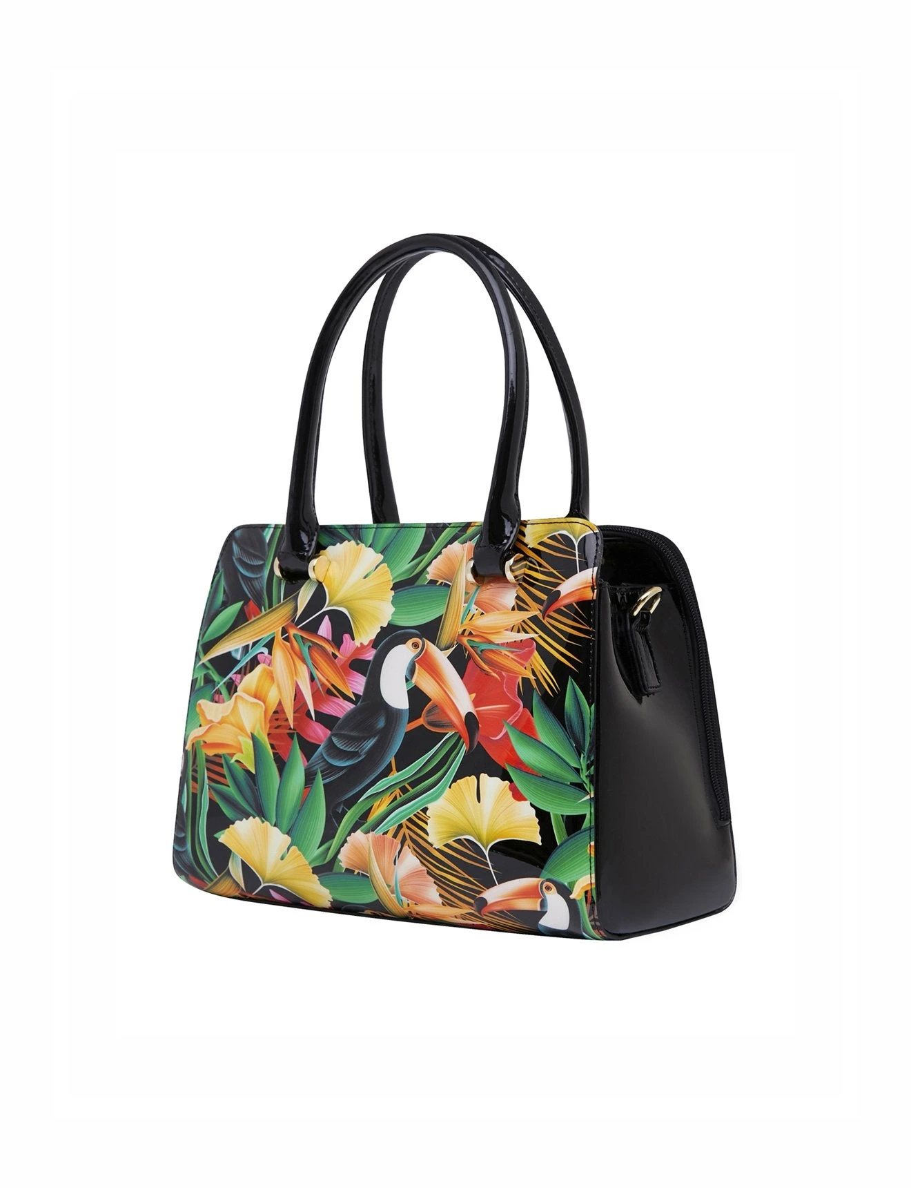 This Serenade Beverly Hills Collection Toucan patent Leather handbag is perfect for everyday. Crafted from premium leather, featuring two main zip compartments one with an interior zip and two interior slip pockets. Ideal for organising all your belongings.
