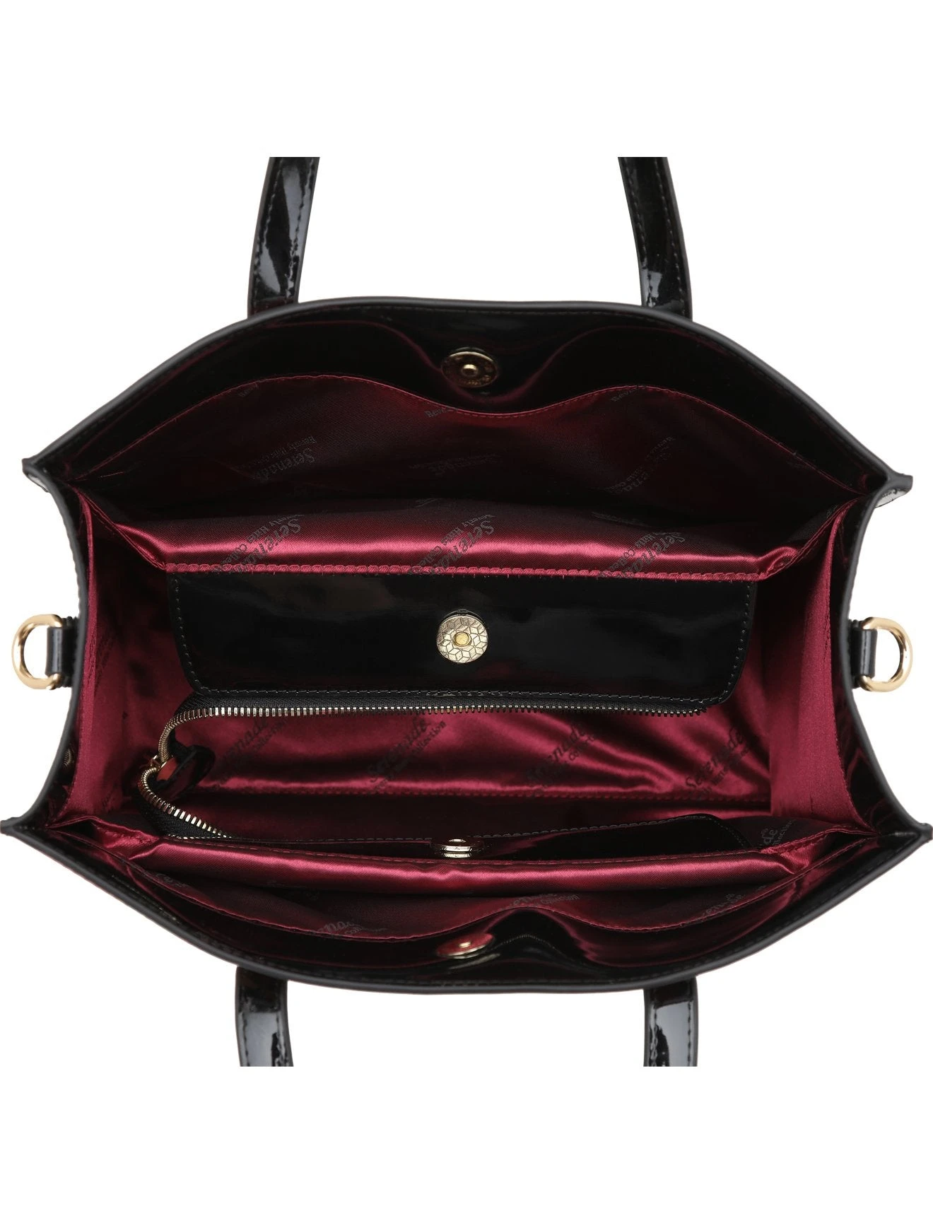 This Serenade Beverly Hills Collection, Wildflower handbag is perfect for everyday. Crafted from premium leather with a patent finish. This bag opens easily and features a central zippered compartment as well as two magentic snap closure compartments.