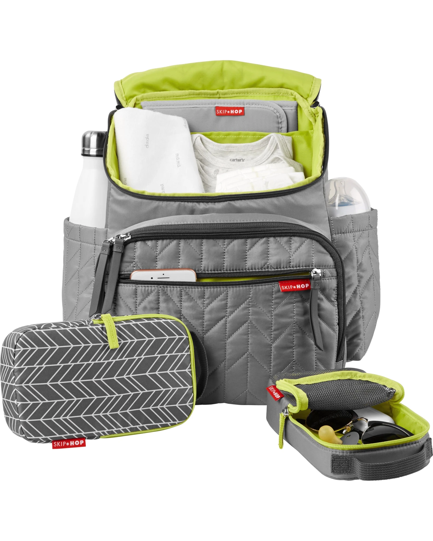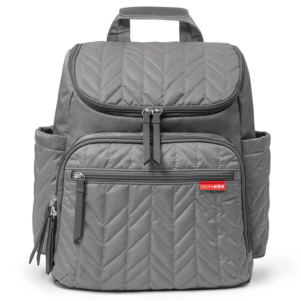 Our lightweight, quilted backpack offers hands-free convenience and special packing cubes for baby’s essentials. The spacious interior has room to tote everything from snacks to spare outfits and the extra wide opening makes it easy to find essentials in a pinch. The front compartment includes 2 multi-purpose packing cubes and allows for extra storage. Everything stays in reach with elasticized interior pockets and insulated side bottle pockets. The changing pad pocket performs double-duty, acting as a laptop holder when traveling. With the Forma backpack, function meets fashion to take you from birth to toddlerhood and beyond in style.