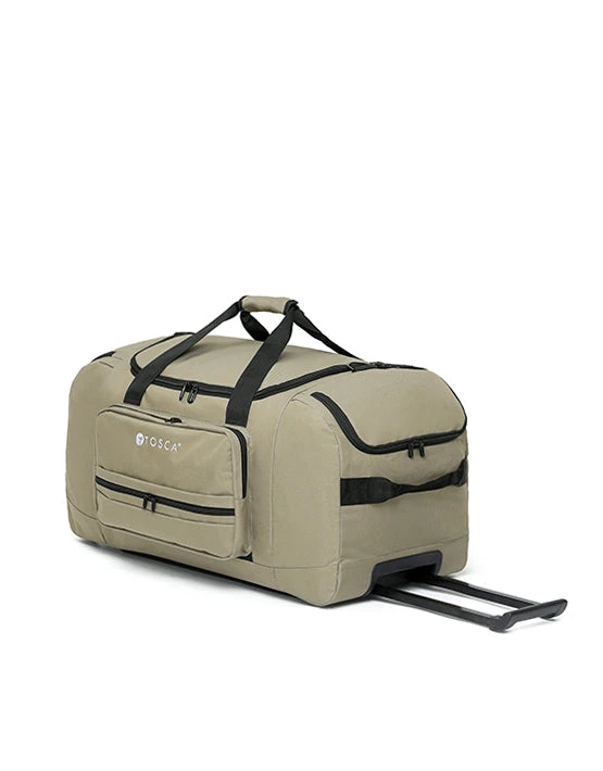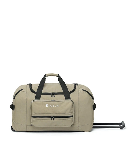 The ultimate duffle bag! The TOSCA Duffle is a deluxe, ultra-light duffle bag with large end pockets, spacious zippered side pocket and industrial strength hardware. With lockable pullers, top loading compartment providing quick access to your items along with a padded top handle, pull out system, bottom stabilizer bar & 5 YEAR WARRANTY, the TOSCA Duffle is the complete wheeled duffle bag.
